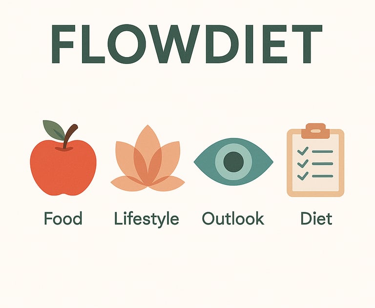 FLOW = Food, Lifestyle, Outlook, Wellness. Unlike restrictive diets, FLOW Diet is about intentional eating, balanced living, and aligning your mindset with your body’s needs.